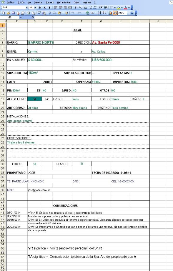 Ficha de su propiedad y comunicación entre usted y nosotros